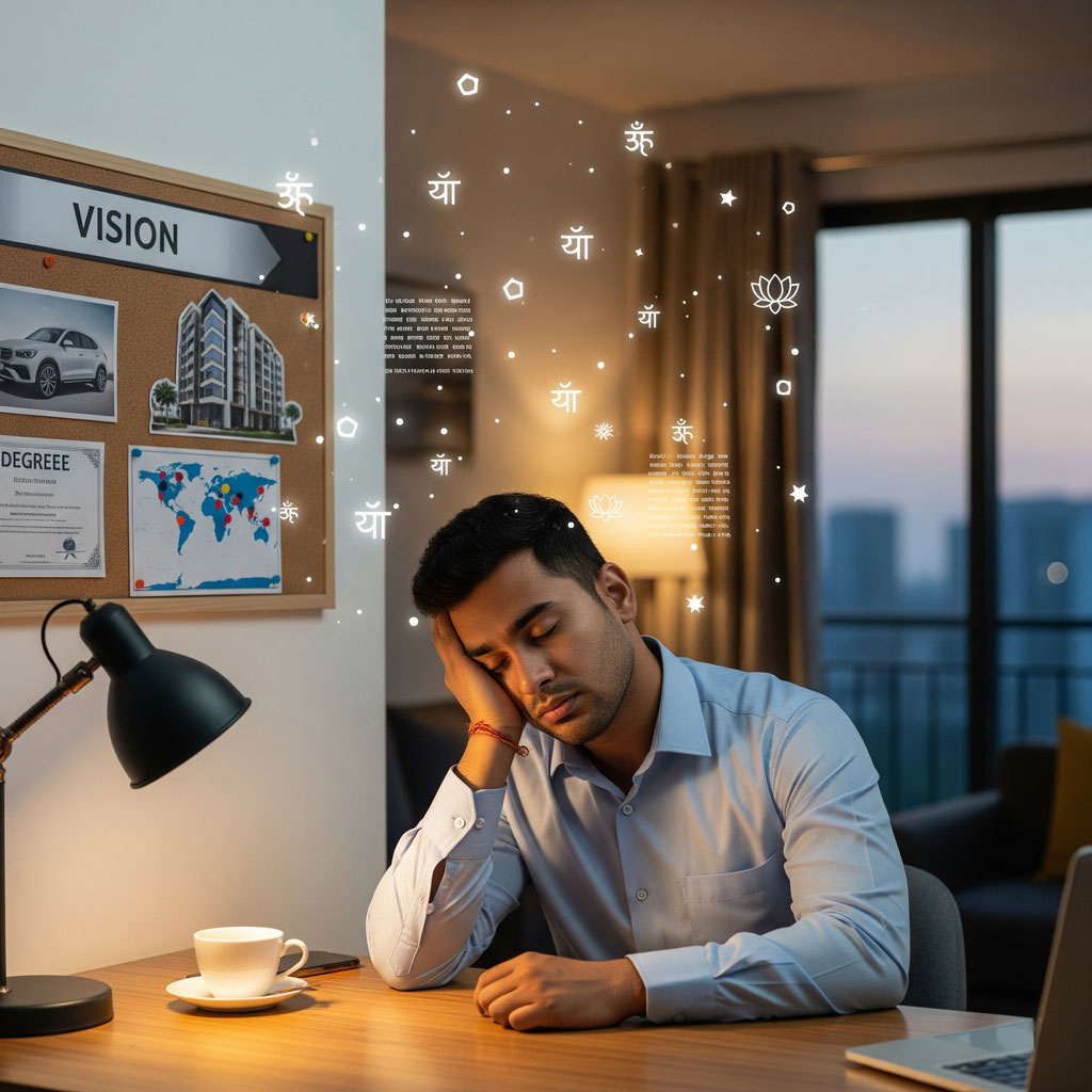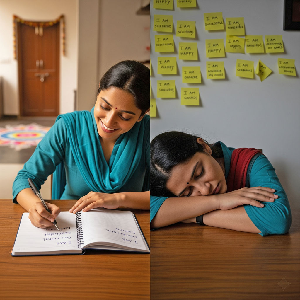 अक्सर कहा जाता है कि अगर आप अपने आदर्श भविष्य की स्पष्ट कल्पना करते हैं, तो उसके सच होने की संभावना बढ़ जाती है। इसी वजह से लोग अपनी दिनचर्या में विज़न बोर्डिंग, सकारात्मक मंत्रों का जाप, या जर्नल में “मैं सफल हूँ”, “मैं खुशहाल रिश्ते में हूँ” जैसे कथन लिखना शामिल करते हैं।